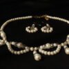 The white pearl festoon necklace is a striking blend of sophistication and charm. This exquisite piece features lustrous white pearls that gracefully drape around your neck, creating an elegant silhouette suitable for any occasion.